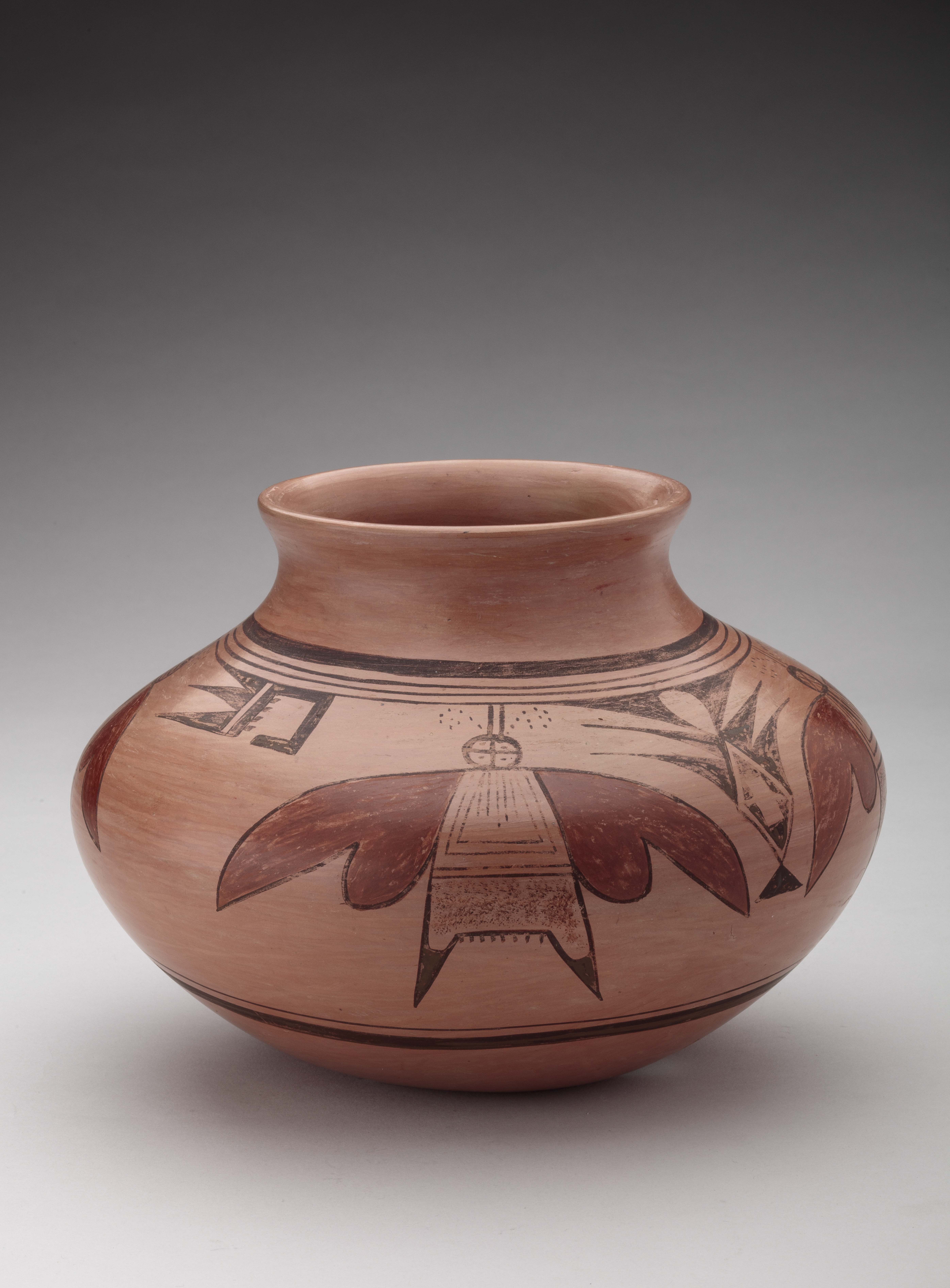 The exhibition also includes a selection of vessels by Native American artists from a diversity of Pueblo communities in the southwest. Among them are Rachel Concho (b. Acoma Pueblo, New Mexico, 1936), whose pottery features a roadrunner; Loretta Huma (First Mesa, Arizona, dates unknown), with a jar adorned with a hummingbird; and Nellie Bica (b. Zuni Pueblo, New Mexico, 1905–d. 1998), represented by a ceramic owl figurine. Owls also appear in works by Gregory Izrailevich (b. Rostov-on-Don, Russian SFSR, 1924–d. St. Petersburg, Russia, 1999), Mel Hunter (b. Oak Park, Illinois, 1927–d. Ferrisburgh, Vermont, 2004) and Vladimir Gedikyan (b. Moscow, Russian SFSR, 1928). A pair of hummingbirds are a subject for Dorothy Doughty (b. San Remo, Italy, 1892–d. Cornwall, England, United Kingdom, 1962), a ceramicist who designed popular bird figurines manufactured in limited editions under her supervision by the Royal Worcester Porcelain Company in England.