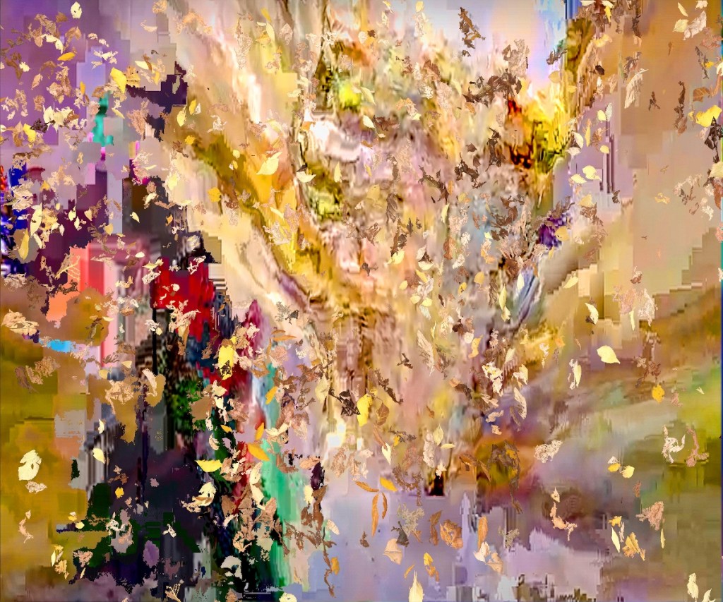 Collin Pollard (b. San Jose, California, 1994; lives and works in San Jose), Sandstorm, 2021. Digitally manipulated computer screenshot collaged with abstracted pixels in Photoshop, 6000 x 7200 pixels. Courtesy the artist.