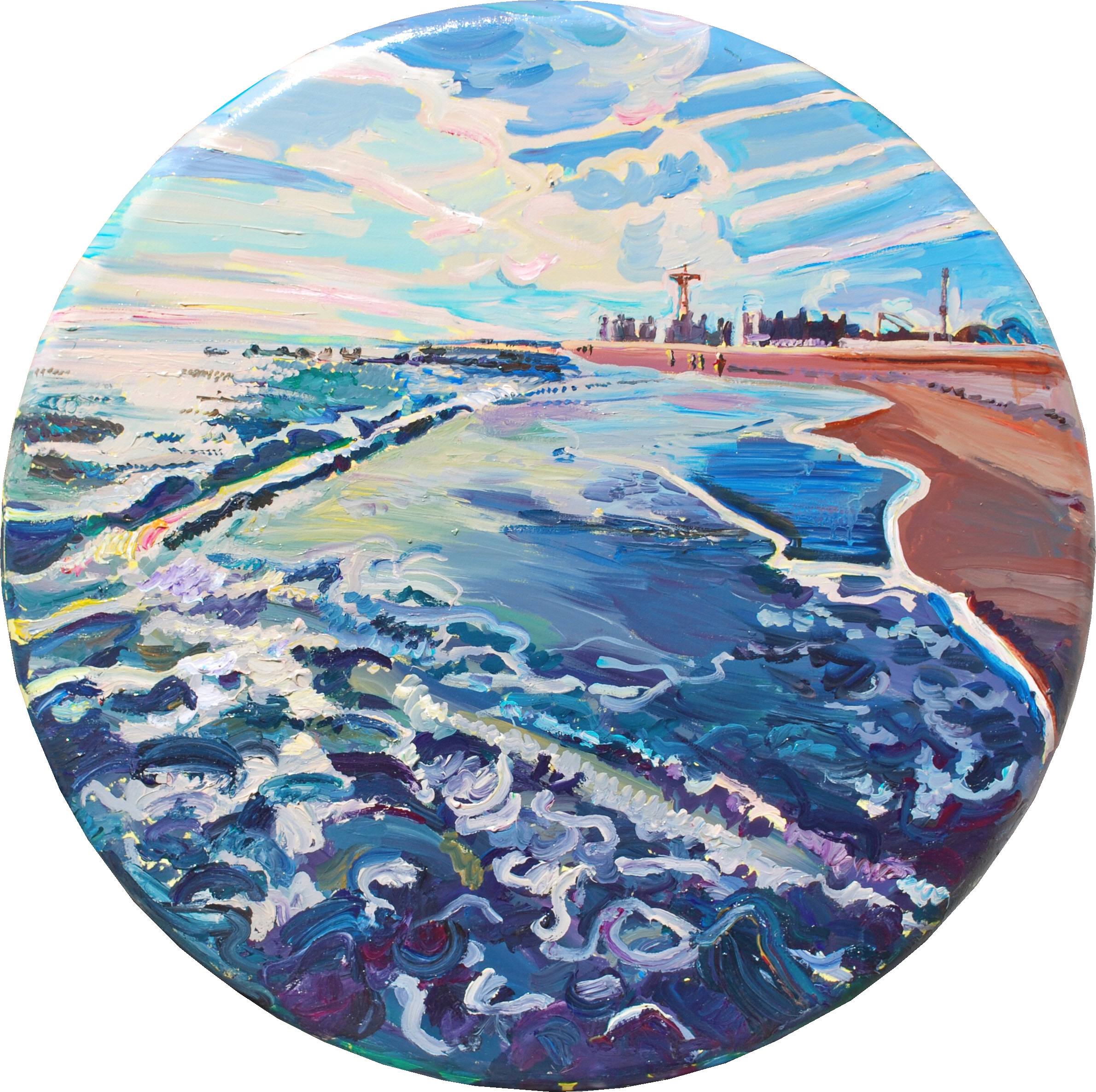 Joel Silverstein’s painting Promised Land—here the beach at Coney Island—is a reference to biblical Israel and to the American Jewish immigrant experience. Richard McBee’s painting Exodus Redux suggests watershed moments of the biblical Exodus that pushed the Israelites toward Sinai and from there toward Jerusalem and the building of Solomon’s Temple. Solomon is traditionally discussed as the author of the Book of Ecclesiastes, explored in Ellen Holzblatt’s paintings. Gabriela Boros considers the watershed warnings to the Israelite-Judeans by the Prophet Isaiah. The universal message of the Book of Jonah is the focus of Yona Verwer and Katarzyna Kozera, of Jan Lauren Greenfeld and of Alan Hobscheid. The tradition of rabbinic commentary is encountered through works by Rachel Kanter, Beth Krensky and Ben Schachter. From there the mystical strains of Judaism emerge in Susan Schwalb’s small, tight abstractions. In Carol Buchman’s work the mystical and geological become panentheistic: the Name of God suffuses nature.