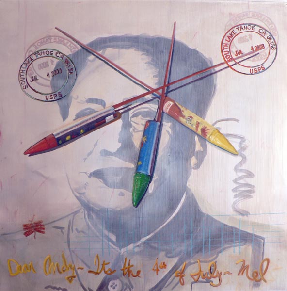 Dear Andy: Postcards from Montauk, features the paintings of Brooklyn-based artist Mel Smothers. Smothers adopts the postcard format in his compositions, with each work personally addressed to Andy Warhol. Beginning “Dear Andy…,” and replete with postmarks rendered in paint, each piece incorporates Warholian images in order to establish a posthumous dialogue with the seminal pop artist.