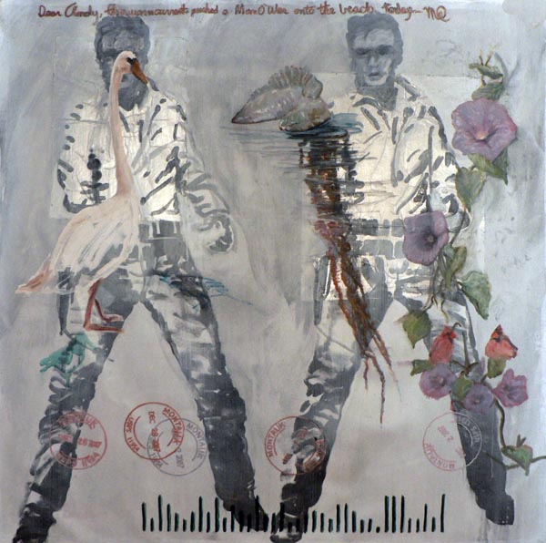 The compositions feature some of Warhol’s most recognizable images, including portraits of celebrities such as Elizabeth Taylor, Marlon Brando, and Marilyn Monroe, and the unmistakable Campbell’s soup cans. Organic subjects which normally appear in a natural setting, such as jellyfish, bird life, and even inanimate objects that might be found washed up on the beach, dominate the faintly rendered pop art images. The result is a compelling body of work which juxtaposes two disparate subjects: the world of pop culture which Warhol embraced, and Smothers’s observations of the natural world. Thus, a dialogue is established.