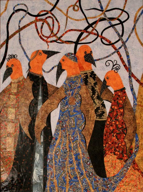 Using images of ancient manuscript pages as her palette, Leibman pieces together and “paints” pictures in bright, vibrant colors. New forms emerge through this process, resulting in both figurative and non-figurative images drawn from a rich variety of sources. The languages visible in the tiny pieces used to create each work range from Egyptian hieroglyphics to Hebrew, as well as many others.