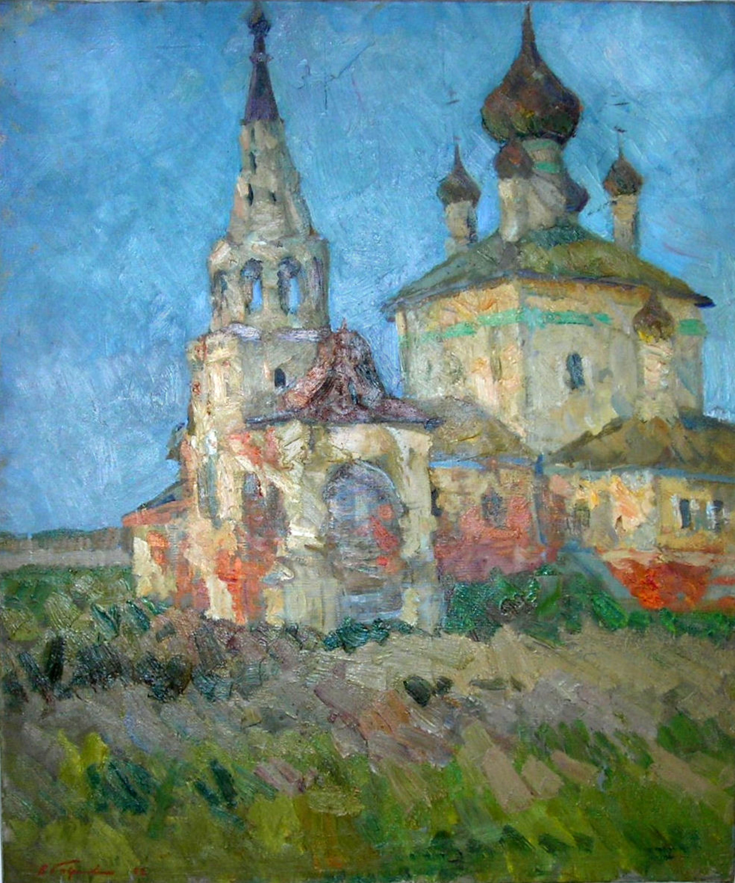 Vladimir Gavrilov (Russian, 1923-1970), Uglich, The Church of Iowan (Church of the Nativity of Saint John the Baptist), 1963, oil on canvas, 39 x 33 inches, The Art Collection at The Hebrew Home at Riverdale